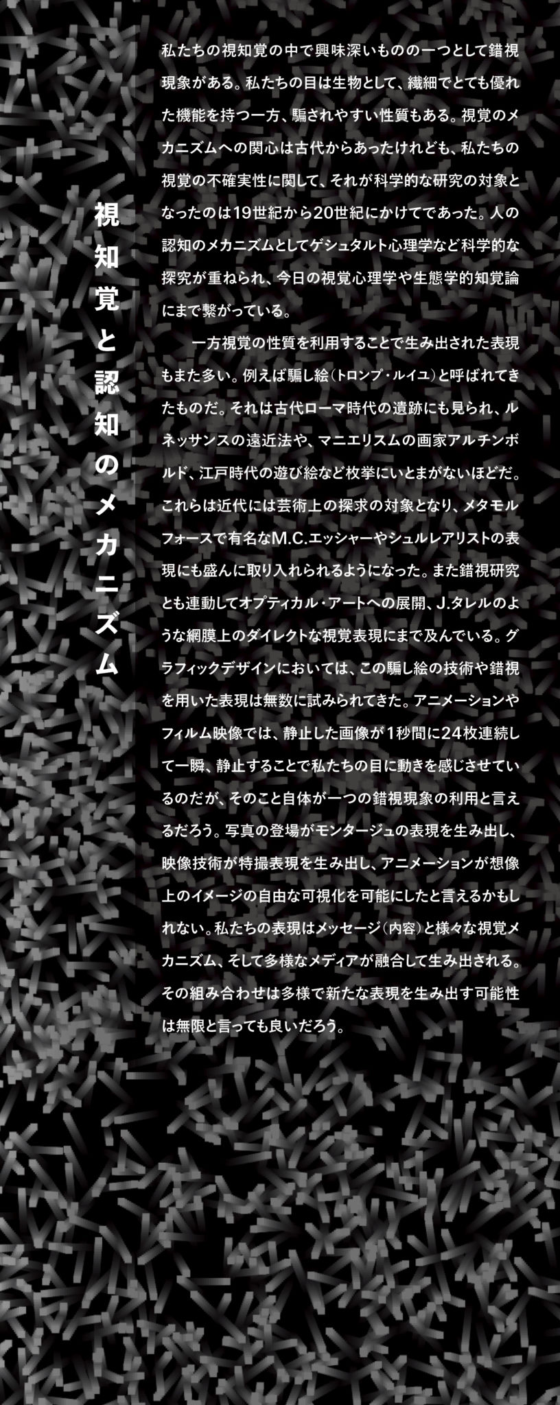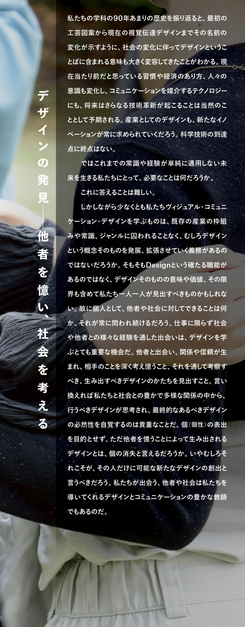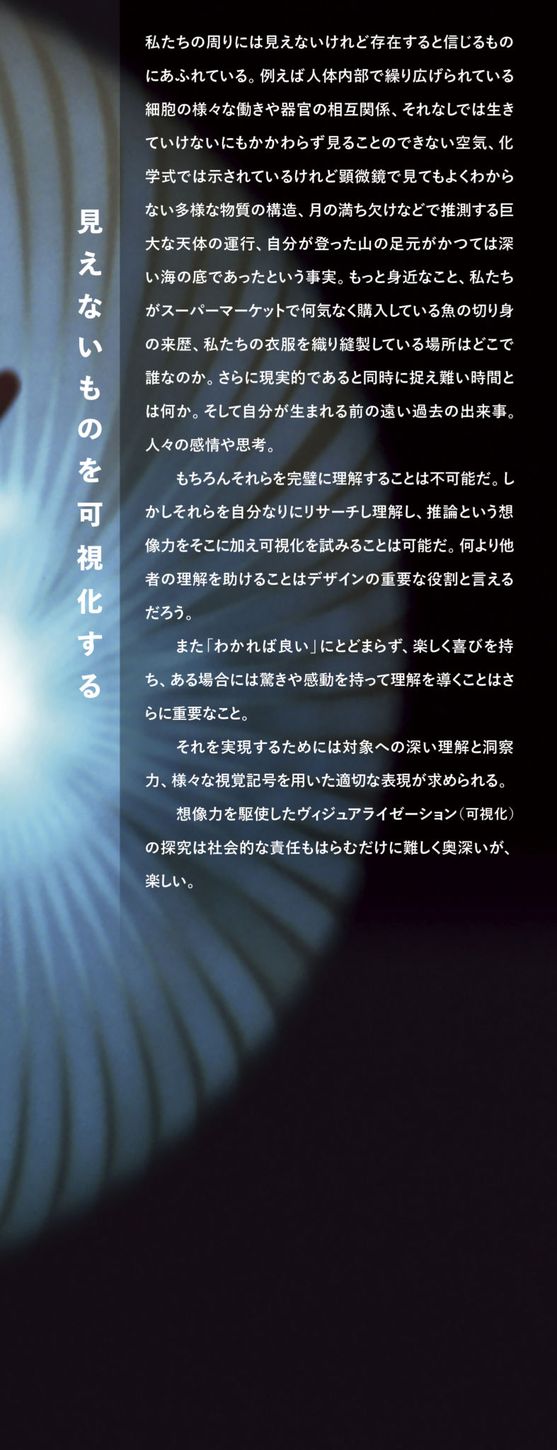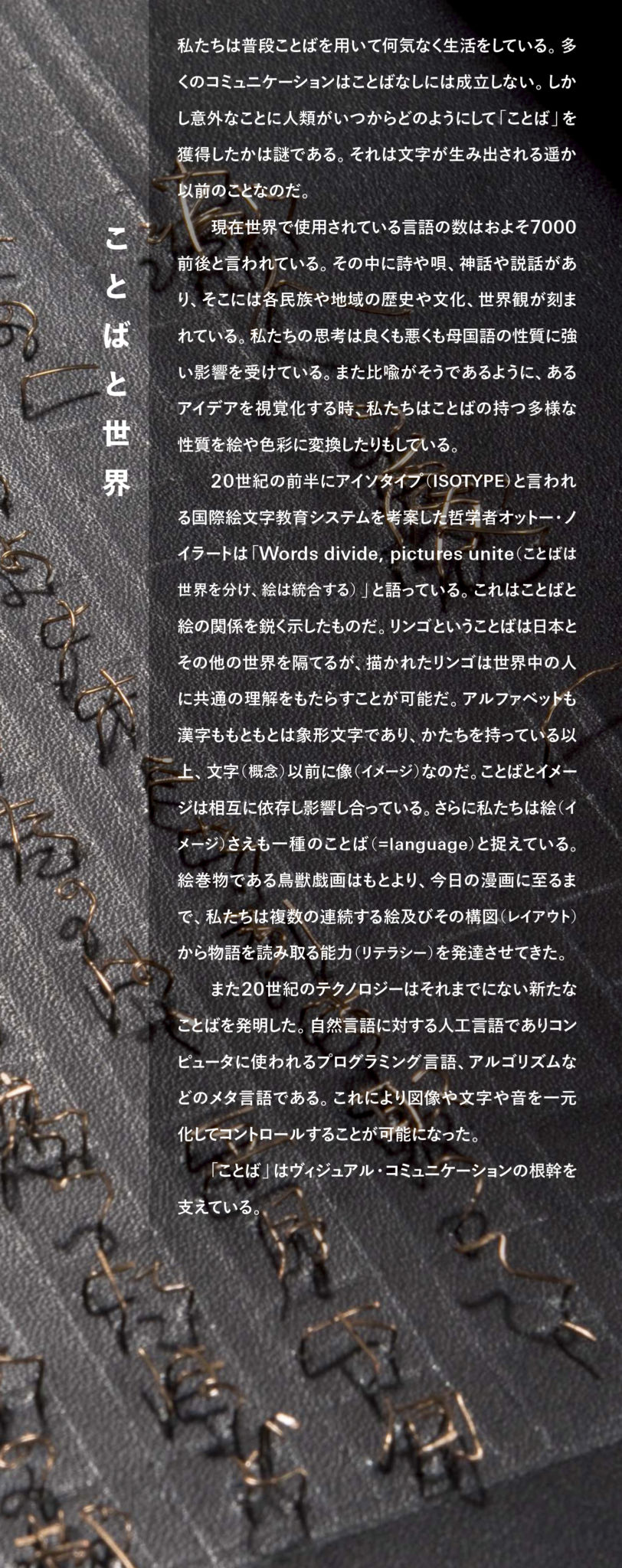 下記のテキストは2020年に「ヴィジュアル・コミュニケーション・デザイン・スタディ─視覚伝達デザイン学科研究室が目指すもの」(武蔵野美術大学出版局刊)の編集を行なった時にこれまでの学生とのコラボレーションと自分の研究を重ね合わせながら、現時点でデザインの可能性、その射程を言葉にして見たものである。全部で15の章になった。