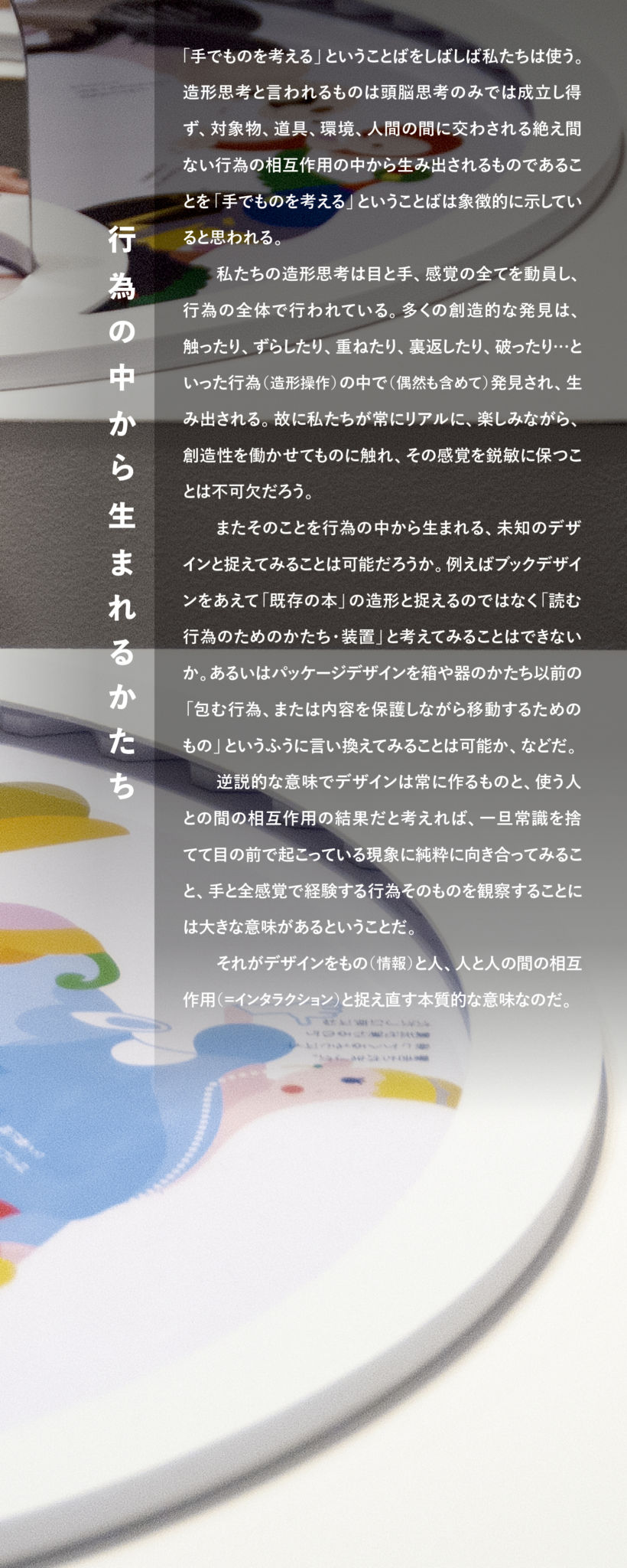むしろ学生たちの制作や研究に同伴することを通して多くのデザインの問題を考え共有する機会が与えられた。